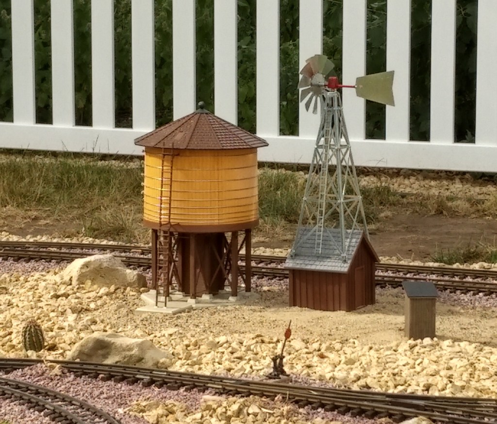 With the 2024 layout expansion being smaller than initially planned, I ended up with quite a bit of extra crushed rock – six garbage cans’ worth to be precise. So rather than let it sit there taking up space, I figured I’d install a little seating area to hold a little patio set we were gifted this summer. It was a pretty easy one-day project, and already just having both seating nearby and a table to set things on, has been very convenient. With that project out of the way, I set about replacing my existing rabbit fence. For the new fence I used the posts from a no-dig fencing system Menards stocks, and spray painted most of the post silver to blend in a bit better. Just pound the base flush into the ground and insert the post; fence is held on via loosely tightened zip ties so the post can be slid off. Now I can remove the fence easily for lawn work or when folks come over. I can just pull the posts out, roll up the fence, and drop some little plugs I made from a dowel and some fender washers into the opening to keep things clean without creating a trip hazard. On each end I set up a couple of sections separate from the rest and simply attached to the other fence sections with clips to make access easy. With all that out of the way, I broke out the old Bob Ross and gave the reballasted layout a good breaking in with the first full run over the new bridge and section.